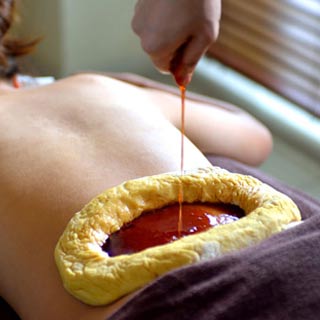 Medicated oil is held in a specially-created pool on the lower back for up to 30-45 minutes.